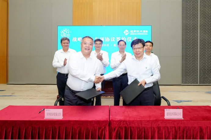 8月20日上午,通用技術集團董事長、黨組書記于旭波,副總經理、黨組成員楊國林會見了來訪的對外經濟貿易大學校長、黨委副書記趙忠秀一行。雙方圍繞深化金磚項目合作,加強金磚機制下國際經貿研究、人才聯合培養、醫療健康服務等進行深入交流。會后,與會人員共同見證國際公司與對外經濟貿易大學簽署戰略合作專項協議儀式。國際公司,集團辦公室、人力資源部、協同部負責人參加上述活動。